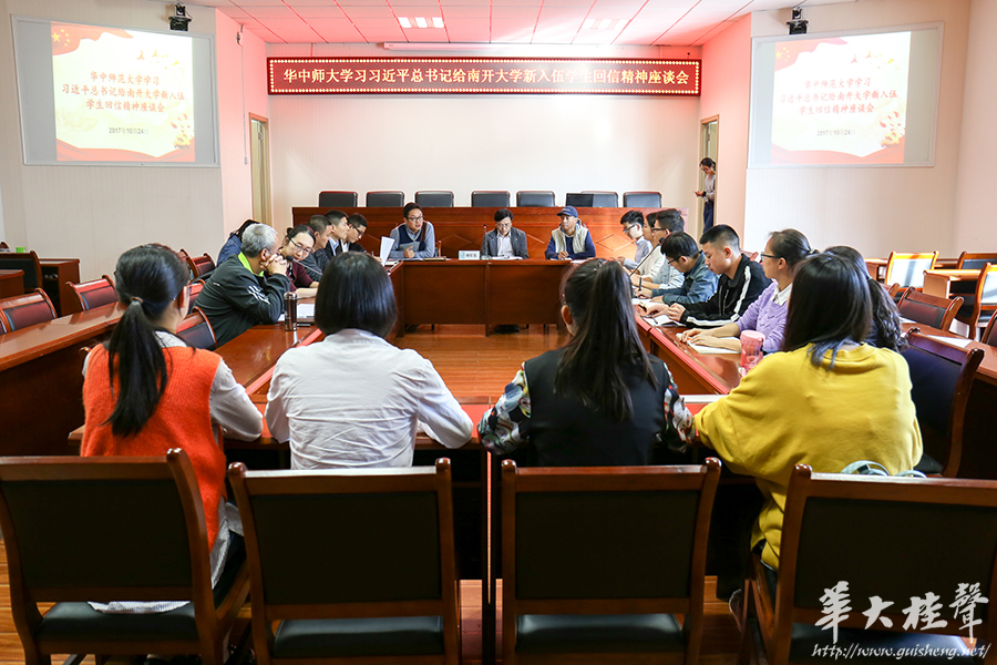 华大桂声讯 10月24日下午4时,华中师范大学学习习近平总书记给南开大学新入伍学生回信精神座谈会在大学生活动中心403会议室召开。出席本次会议的有学生工作部、人民武装部负责人、学院副书记、辅导员代表、部队转业干部代表、服退学生代表、暑期参加全国全省军事训练营学生代表、新生军训之星代表,会议由人武部罗高峰主持。