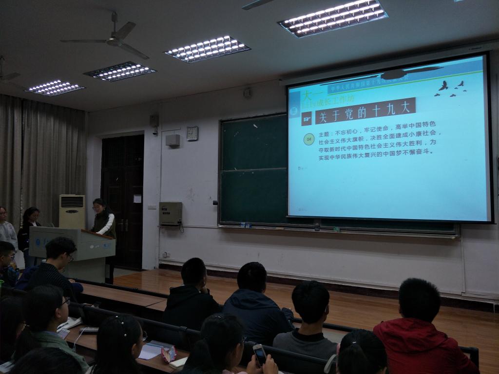 为深入贯彻落实党的十九大精神,积极学习党的十九大纲领,外国语学院英语系2017级于10月29日下午6点在7302教室开展了”我看十九大”形势政策报告会暨年级团日活动。
