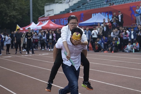 “猪八戒背媳妇”共分6组进行,每组有4个参赛队伍,每个参赛队伍有6组选手,男女一组进行迎面接力。下午在校运会趣味混合团体项目“猪八戒背媳妇”第一组比赛后,指导此次项目的金桥跟同学们强调,在比赛时一定不能慌张,“盲猪八戒”不要受到场外观众的干扰,认真听自己搭档的指挥,不要像无头苍蝇一般在跑道上乱跑,同学们纷纷点头。