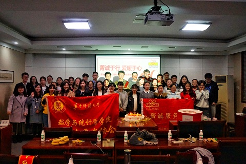 华大桂声讯11月18日晚,华中师范大学数学与统计学学院菁诚服务队全体队员齐聚科学会堂201,举行以“菁诚于行,爱暖于心”为主题的菁诚服务队十二周年庆典暨优秀志愿者表彰大会。华中师范大学原青年志愿者联合会主席、前菁诚服务队队长林昭呈、华中师范大学数院团委学生会副书记陶君博、黄建春出席庆典,与队员们一同回忆往昔,为菁诚十二周岁庆生。