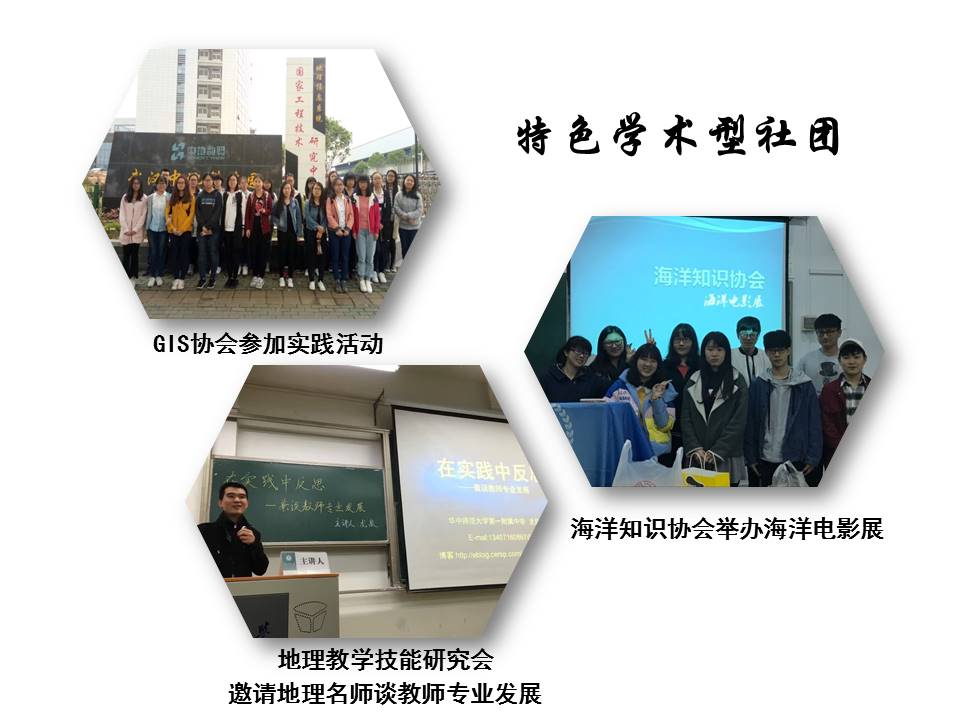二是打造特色学术社团。实施“师范生素质提升计划”和“非师范生就业竞争力提升计划”,培育GIS协会、海洋知识协会、地理教学技能研究会等特色学术社团。