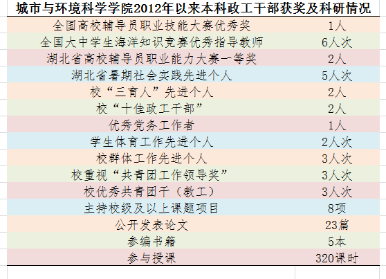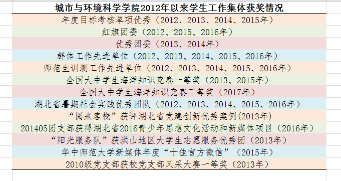 党的十八大召开后的五年来,城市与环境科学学院结合学校办学理念和学院发展目标,在大学生党建与思想政治工作领域,牢固树立“与人才培养对接、为学生发展服务”的工作理念,不断深化对学院主导学生工作模式的探索实践,紧紧抓住“外力、内功、主线、品牌、队伍”五个关键词,深耕细作、真抓实干,不断提升大学生思政工作水平,提高大学生综合素质和创新能力。