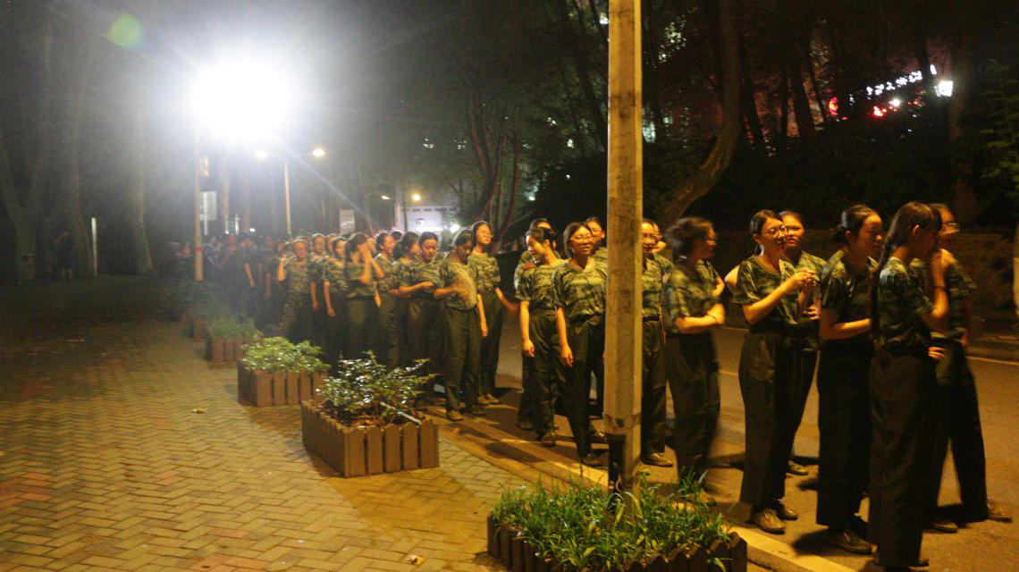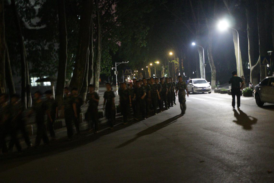 为适应全民国防大背景,增强新生的国防观念和国家安全意识,加强其组织性、纪律性,磨练意志品质,激发战胜困难的信心和勇气,培养艰苦奋斗、吃苦耐劳的作风,2017年9月5日晚8点至9点40分,华中师范大学军训办特组织2017级新生军训拉练活动。